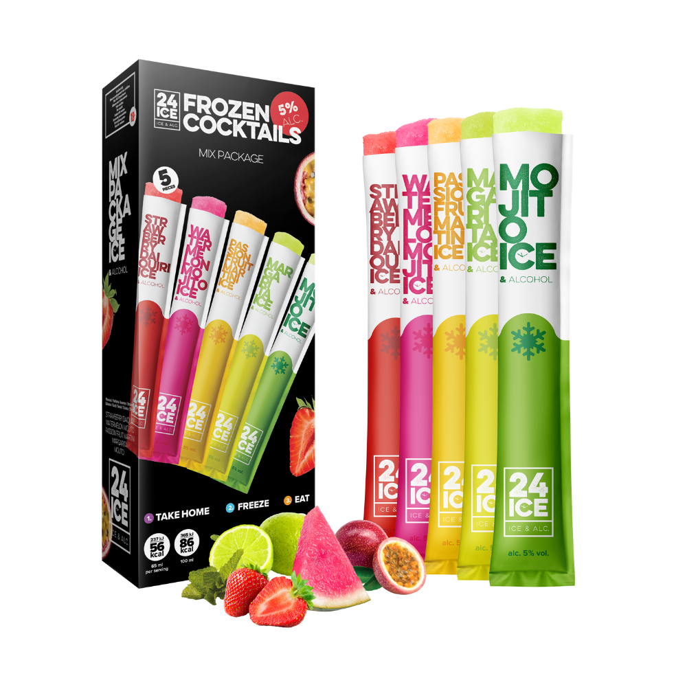 Osvežavajući Frozen kokteli su ledeni štapići u raznim bojama i ukusima. Možemo da zamislimo koliko je teško izabrati između svih ukusa 24 ICE. Naravno, želite da probate sve! Zato smo vam olakšali sa našim Mix Pakovanjem 2.0 koje sadrži naših pet najnovijih ukusa.